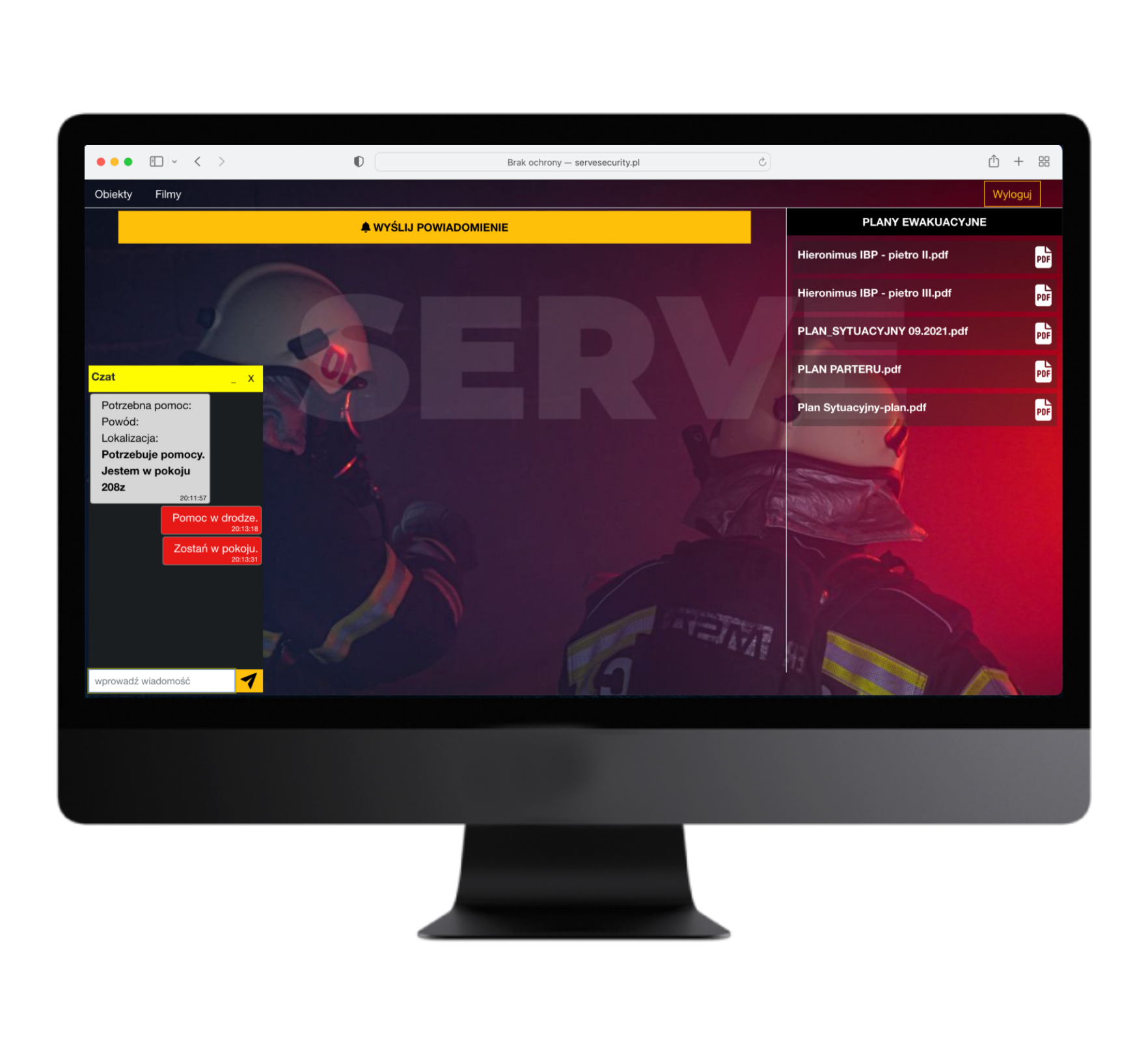 Możliwość nawiązania bezpośredniego kontaktu z ochroną obiektu w razie wystąpienia zagrożenia dla zdrowia lub życia. Czat bezpośredni.